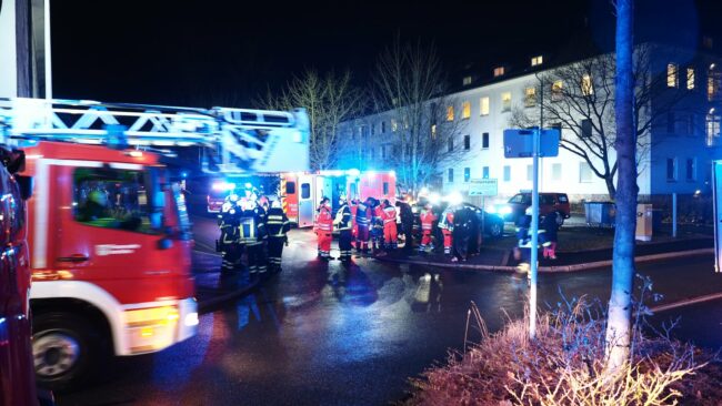 Zwei Drehleitern wurden vor- und rückseitig des Gebäudes in Stellung gebracht. Den Einsatzkräften gelang es schnell, das Feuer im Keller unter Kontrolle zu bringen. Es konnten keine weiteren Personen im Gebäude festgestellt werden.