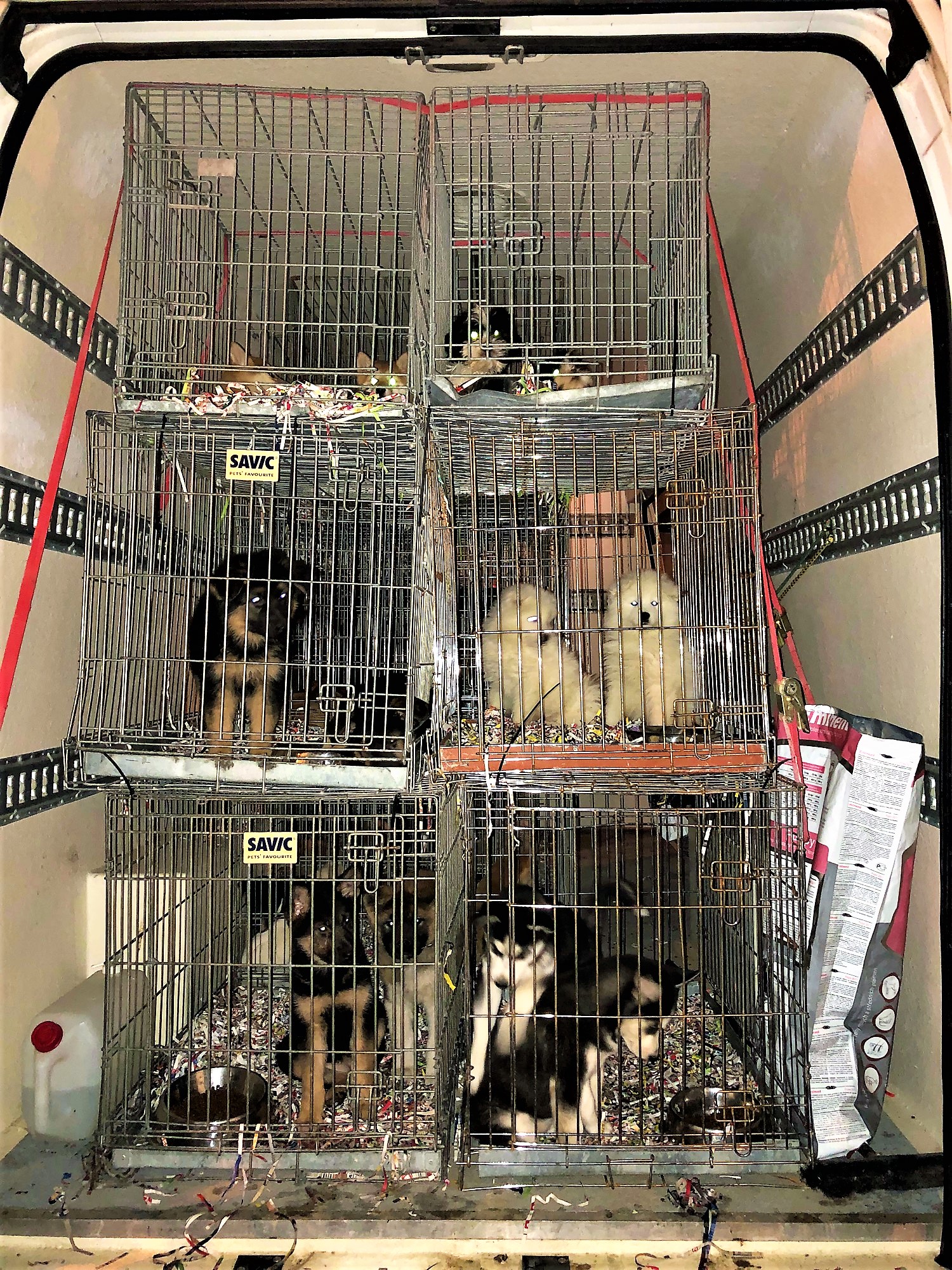 Nach ersten Erkenntnissen fielen dabei Unregelmäßigkeiten beim Impfschutz der Welpen auf, so dass Polizei und Veterinäramt die vom Transport geschwächten Tiere beschlagnahmten.
