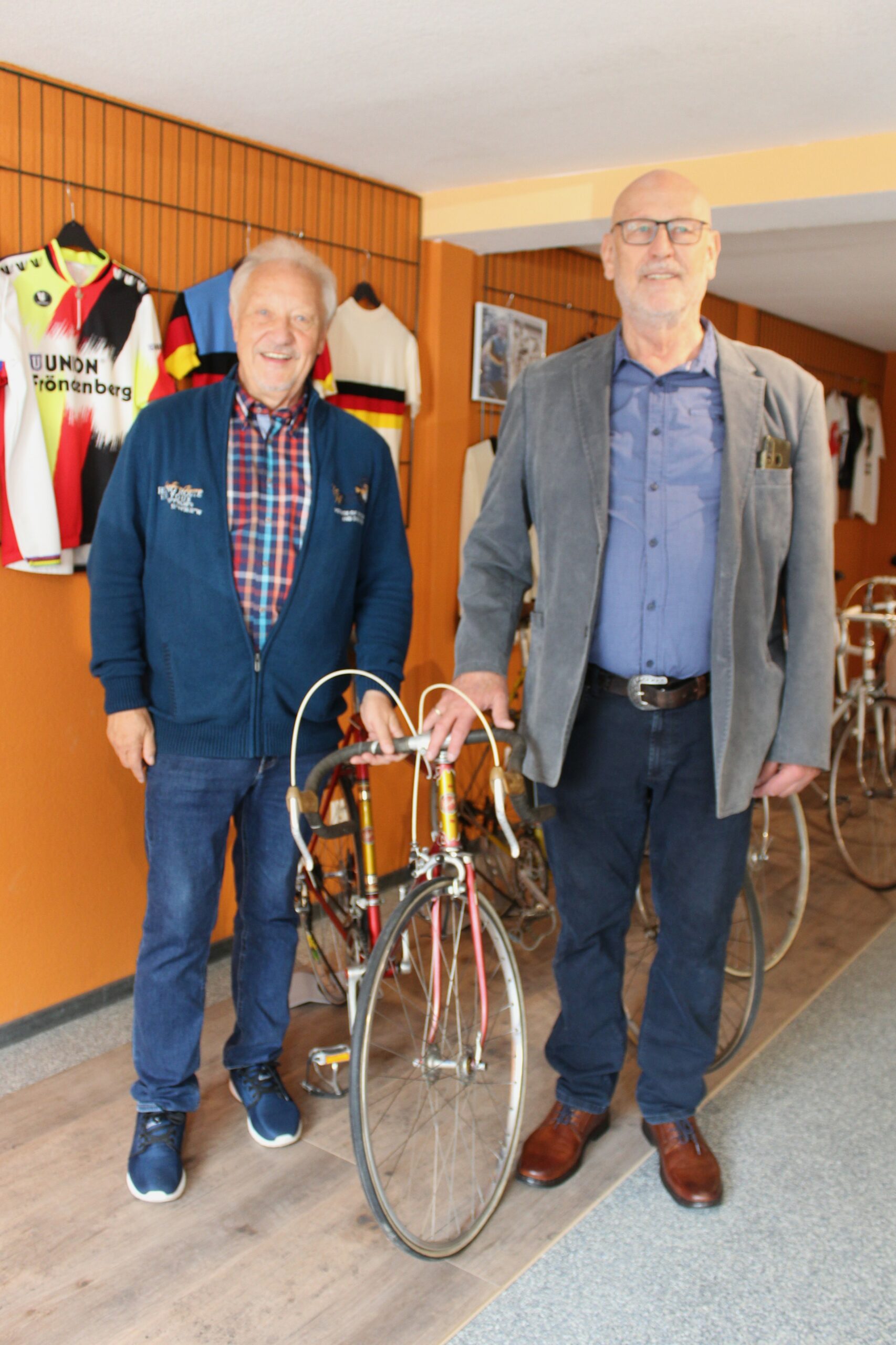 Bernd Kern, Vorsitzender des Trägervereins und Besitzer des Museumsgebäudes, und der Ex-Profisportler und Rennsport-Fachmann Hans Kuhn sind besessen von ihrer Leidenschaft für den Radrennsport.