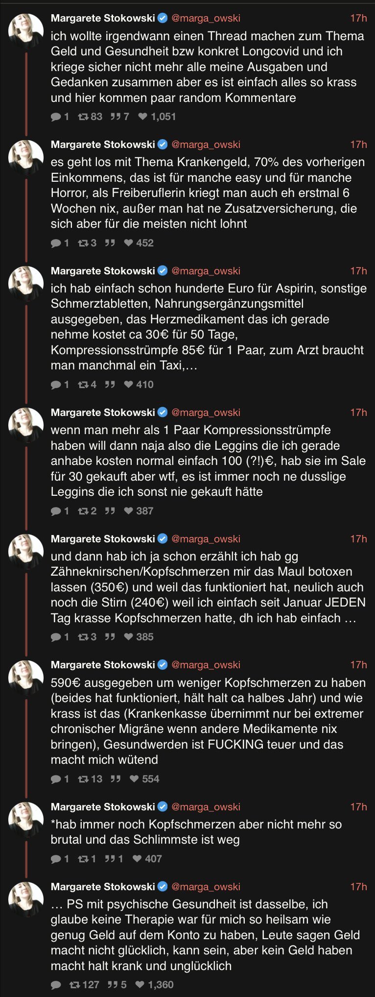 Argumentationslinie zur Coronabekämpfung der Publizistin Margarete Stokowksi auf ihrem öffentlichen Twitteraccount: