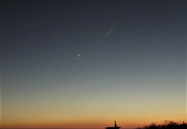 Dies geht mit einem Stellungswechsel einher: War bisher Jupiter bislang oberhalb der Venus zu sehen, so dreht sich das am 2. März um, und Jupiter wandert unter die Venus.