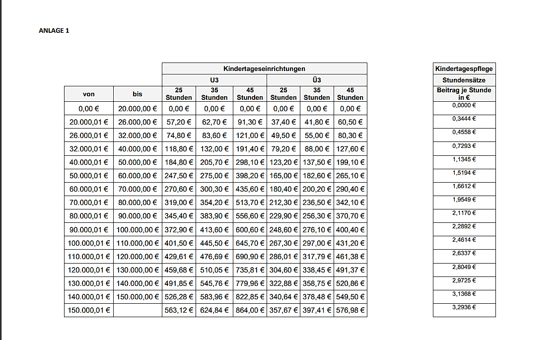 Als Grundlage zur einmaligen Beitragsanpassung zum 01.08.2023 wurde die aktuelle Elternbeitragstabelle genommen.