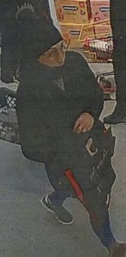 - Bekleidung: schwarze Jacke, dunkle Hose, schwarze Sneaker, Mütze, dunkler Schal, Einkaufstasche