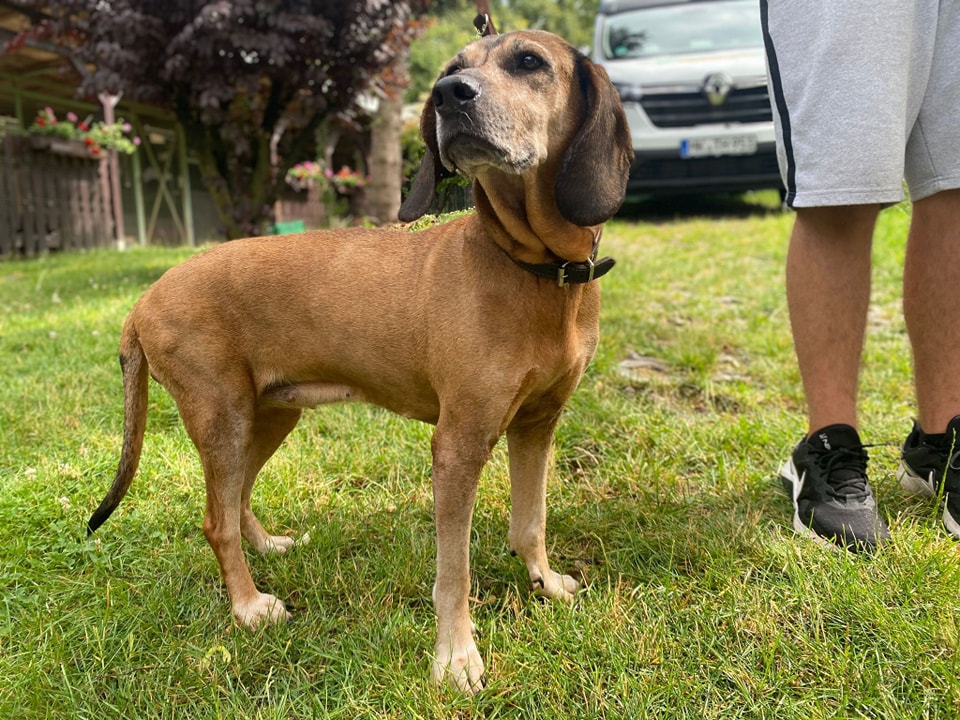 Änne ist ein Bayrischer Gebirgsschweißhund. Die laut Tierschutzverein nette, noch sehr fitte Hundeomi sucht jetzt ein Gnadenplätzchen.