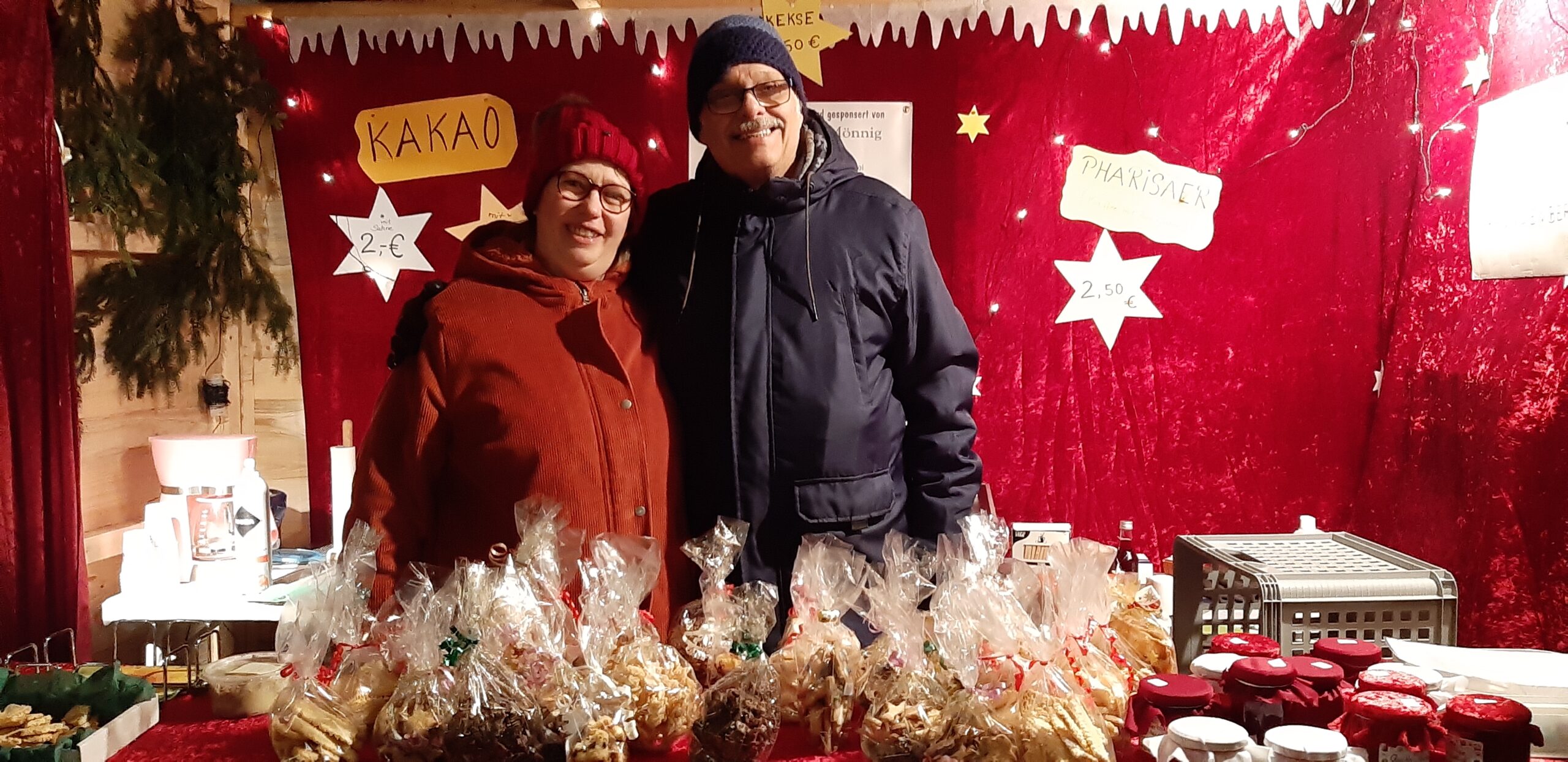 - Selbstgebackene Weihnachtsplätzchen für 1,50 pro Tüte, Pharisäer, Kakao mit Schuss: „Ausverkauft!“, meldete strahlend das fröhliche Team der Neuapostolischen Kirchengemeinde Fröndenberg. (Foto AaH)