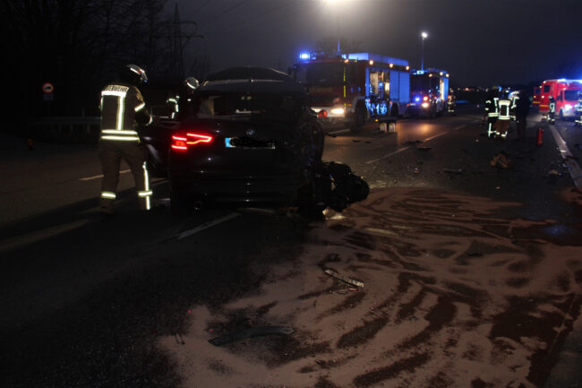 Der Erwitter versuchte noch, dem Fahrzeug der 66-jährigen auszuweichen. Das gelang nicht mehr. So prallte er vermutlich ungebremst auf den BMW der 66-jährigen auf.