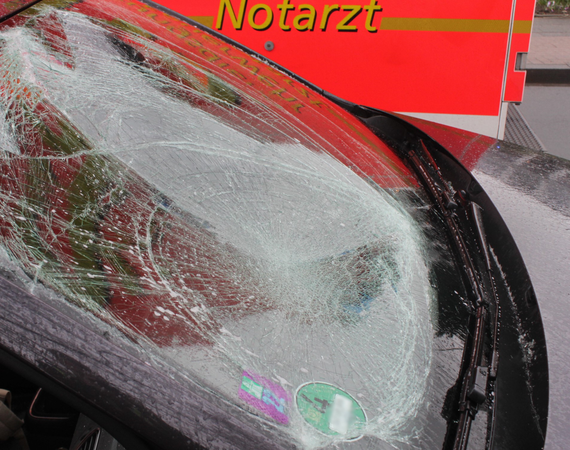 Beim Zusammenstoß knallte der Radler mit seinem Körper auf die Windschutzscheibe, die dadurch stark deformiert wurde.