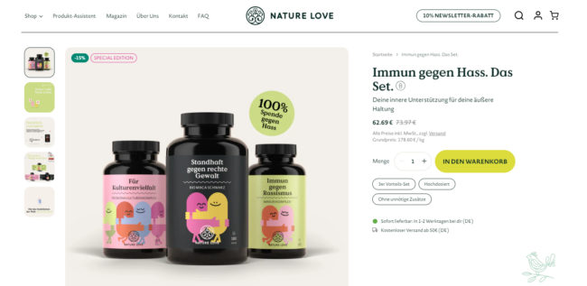 Und das gehe am besten mit den Produkten, für die Nature Love steht.
