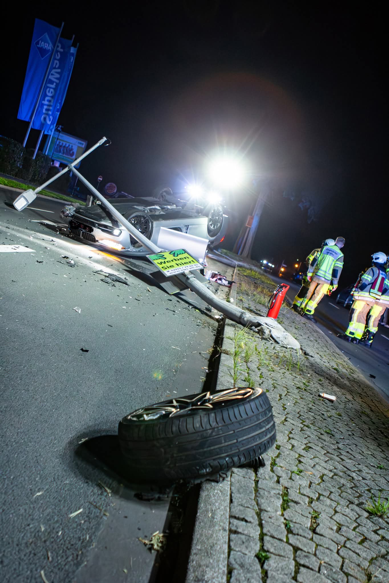 Da bei dem Unfall eine Straßenlaterne beschädigt und umgestürzt war, wurden die Stadtwerke zur Einsatzstelle angefordert, um diese fachgerecht abzuklemmen.
