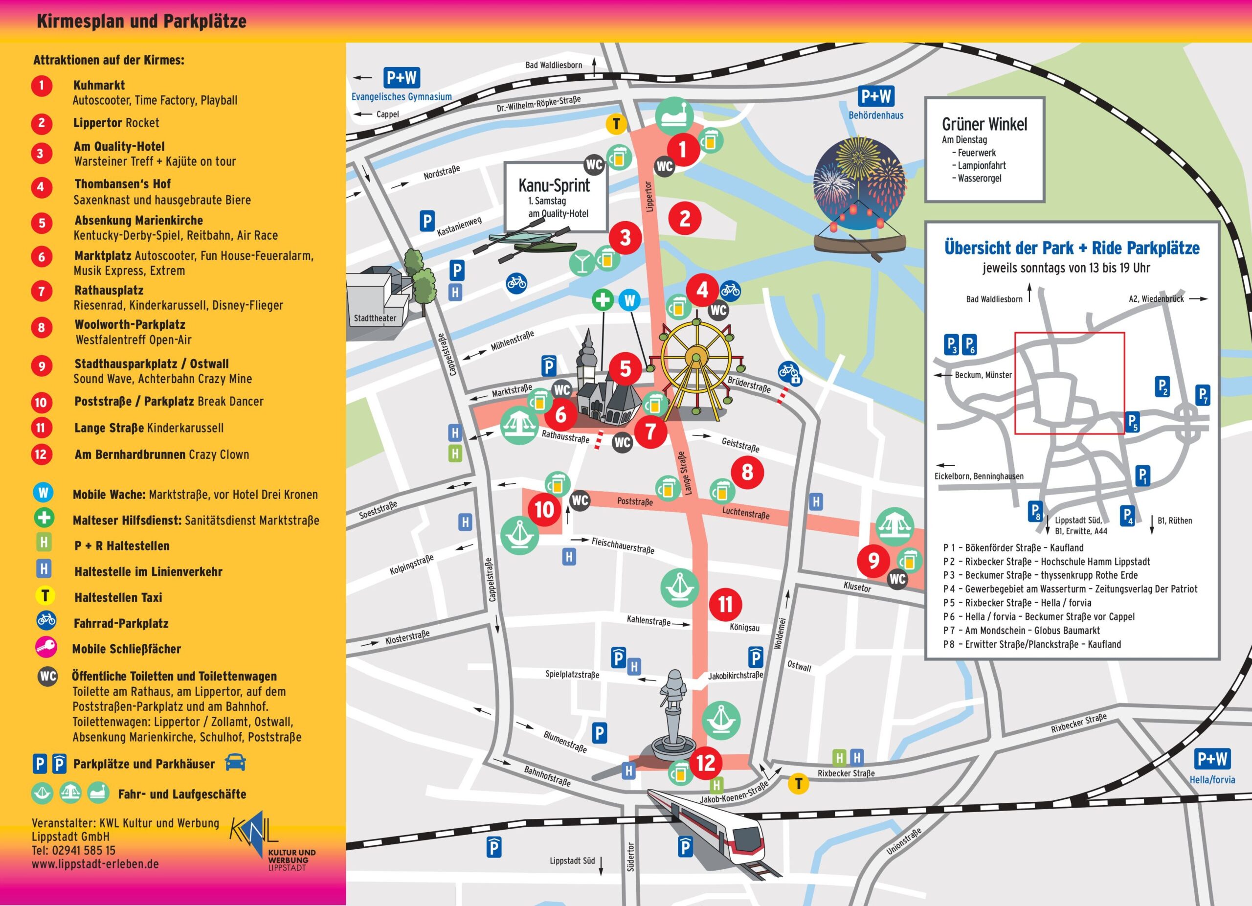 Das gesamte Fest erstreckt sich über die Innenstadt von Lippstadt, einschließlich zentraler Plätze wie dem Marktplatz, der Lange Straße und weiteren umliegenden Bereichen. Der Stadtkern wird dabei zu einer großen Festmeile.