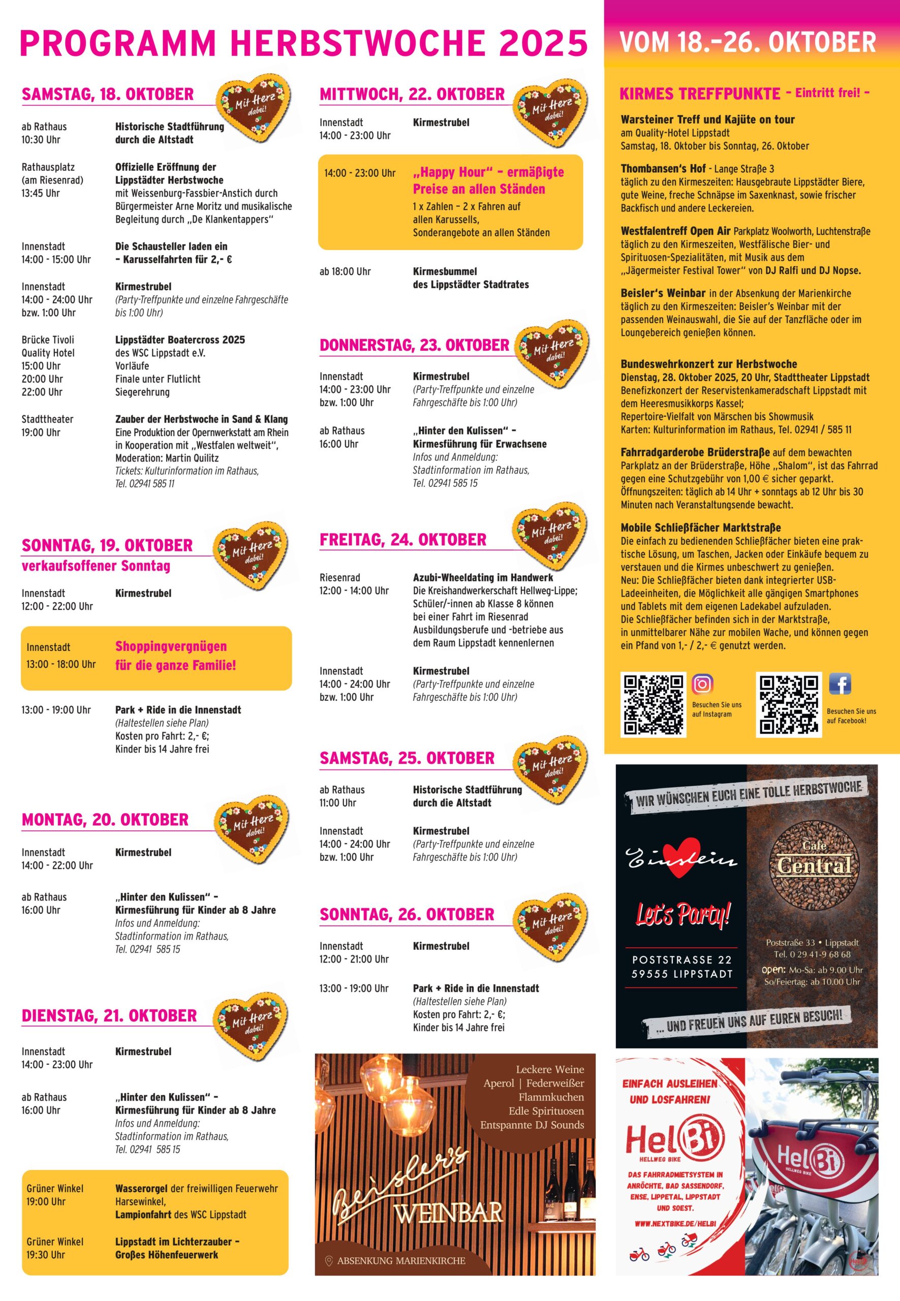 Große Teile der Lippstädter Innenstadt verwandeln sich vom 18. – 26. Oktober 2025 wieder in einen rummeligen Kirmesplatz: