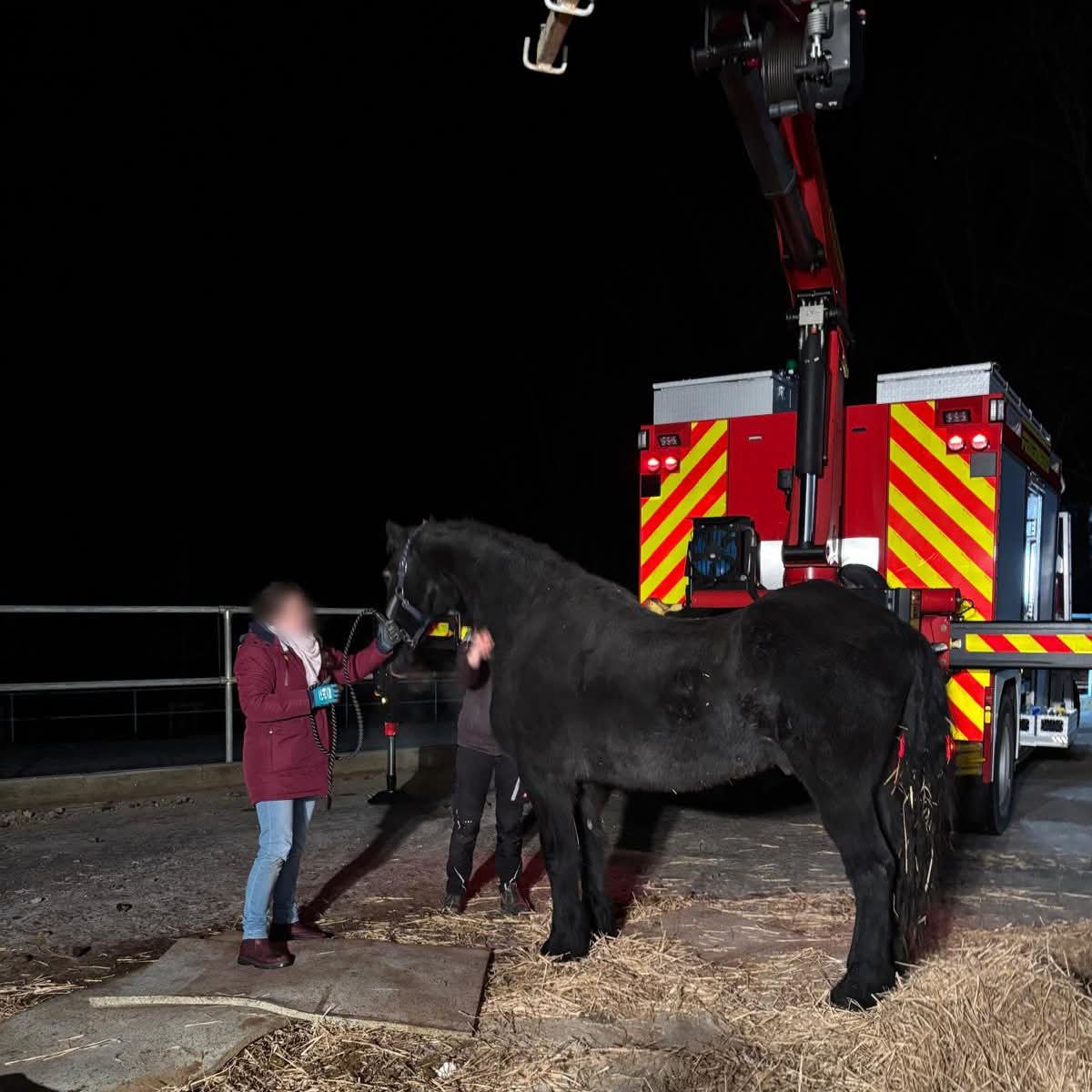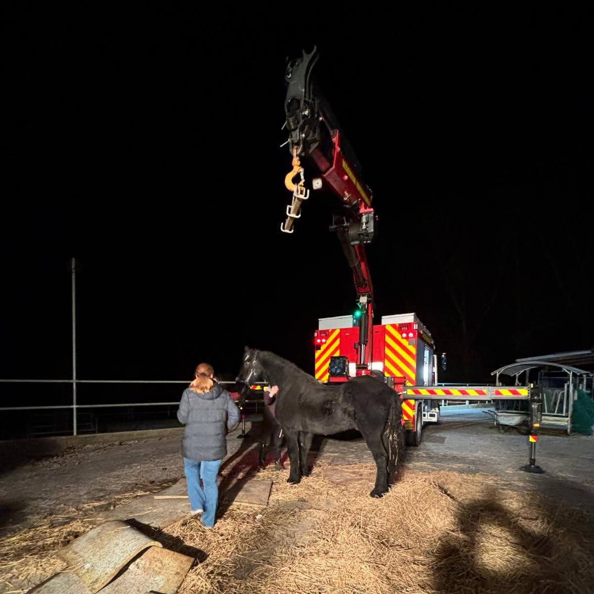 Mit Unterstützung des Krans konnte das Pferd schließlich sicher auf die Beine gebracht werden.